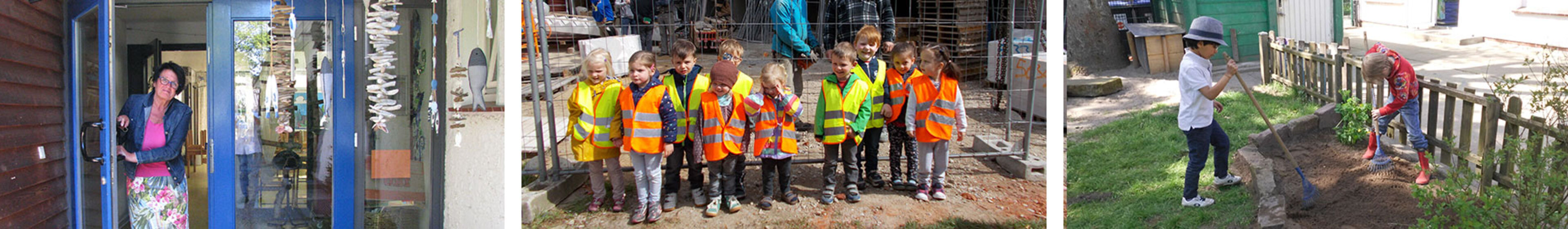 Die enge Verbindung von Krippe und Kindergarten ist geprägt von der regelmäßigen, gemeinsamen Nutzung der Räumlichkeiten im Kindergartenbereich. Die Krippenkinder sind oft im Bewegungsraum, im Rollenspielbereich und auf dem Außengelände des „großen Kindergartens“ in Begleitung einer Krippenmitarbeiterin. Dadurch entstehen viele Begegnungen und neue Kontakte der Kinder untereinander. Das erleichtert den Kindern den Übergang von Krippe in den Kindergarten.