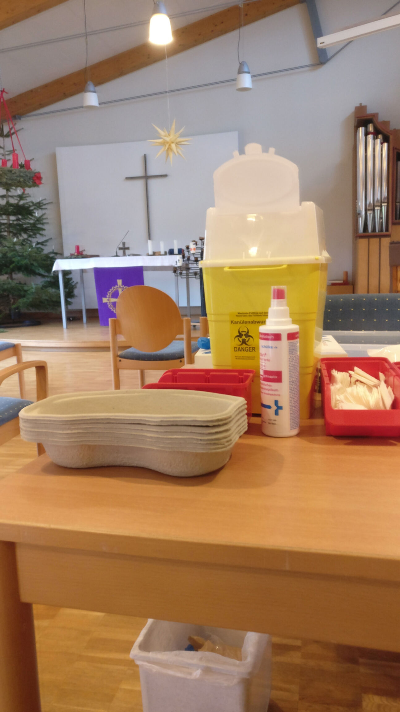 Der Kirchsaal in der Matthäuskirche wurde jetzt für eine Impfaktion genutzt. 50 Erzieherinnen des Kirchenkreises aus dem Stadtgebiet erhielten die dritte Impfung. Den reibungslosen Ablauf ermöglichten die Mitarbeiter/innen vom ASB sowie Marcel Gutt aus dem Kirchenamt und Pastorin Antje Seelemeyer. „Eine erfolgreiche und sinnvolle Aktion,“ stellten alle einhellig fest.