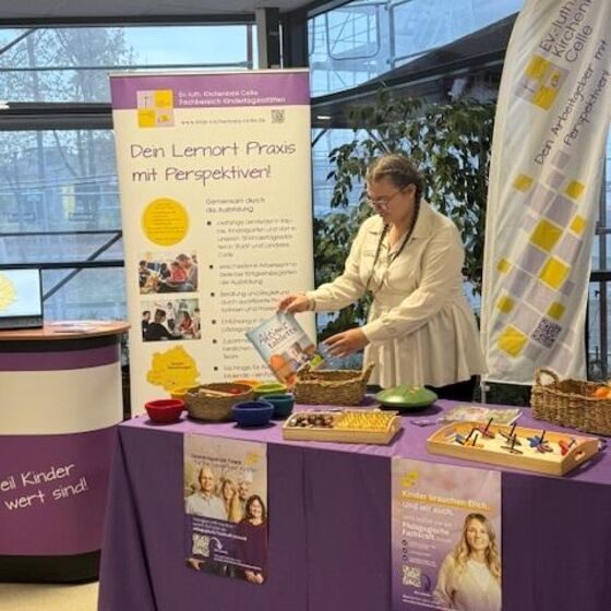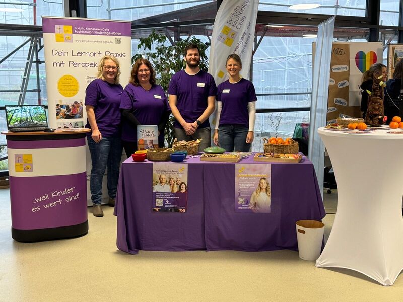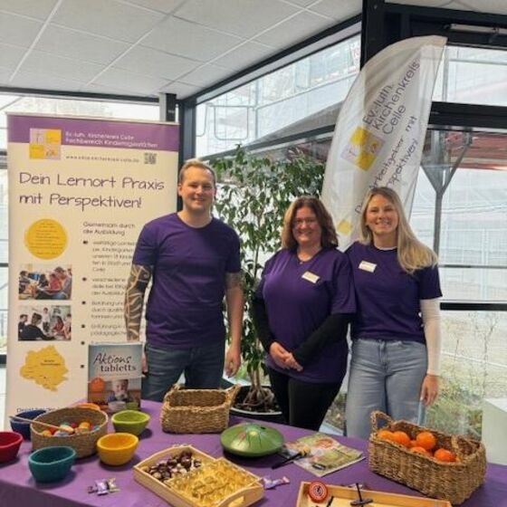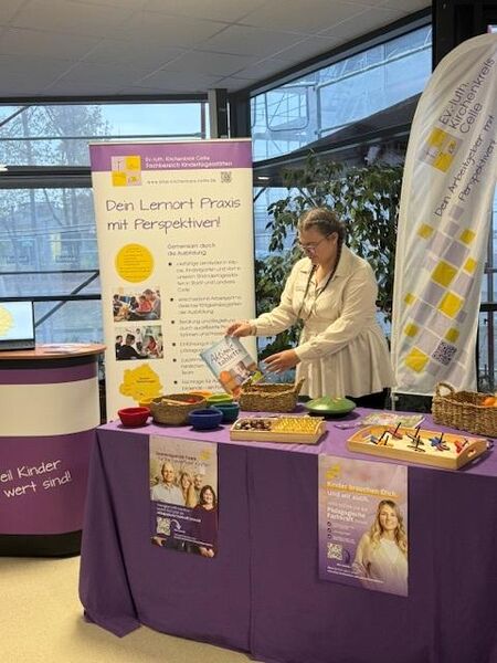 Das KiTa-Team- Öffentlichkeitsarbeit (public relations) präsentierte auf der Berufsmesse- Ausbildung in der Tasche- vom 13.11. und 14.11.2025 die KiTas im Kirchenkreis Celle. Der Kirchenkreis Celle- Fachbereich KiTas nahm bereits das 3. Mal in Folge an der Berufs- und Ausbildungsmesse teil, um für den pädagogischen Beruf sowie für die Praxisbegleitung / Ausbildungsbegleitung in den evangelischen KiTas zu werben.