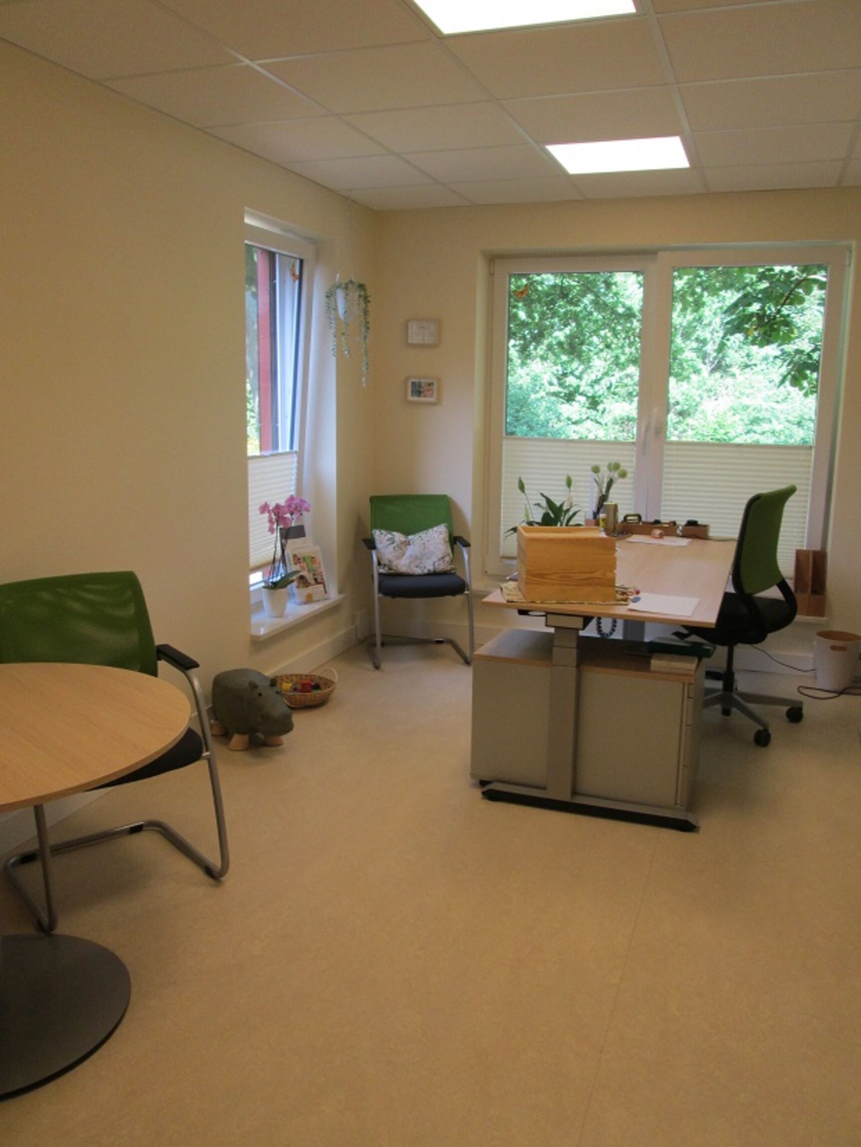 Es gibt Gebäudeerweiterungen, die einem sofort ins Auge stechen, weil sie so gar nicht zu dem bereits Bestehenden passen. Das ist bei dem neuen Mitarbeitertrakt der Ev. Kindertagesstätte Meißendorf, der nach nur gut neun Monaten Bauzeit jetzt im Juli 2021 bezugsfertig war, so ganz und gar nicht der Fall. Der Anbau passt sich farblich und baulich an das schon Dagewesene an und obwohl der Anbau auf den ersten Blick klein wirkt, hält er doch alles bereit, was für die mittlerweile zwölf pädagogischen Mitarbeiter von Nöten ist. Die ehemaligen Fenster der vorhandenen Kindertagesstätte bilden jetzt die Türen zu den neuen Zimmern. Die Kita Leitung Maja Rieck konnte ein neues, helles, großes Büro beziehen mit angegliedertem Archivraum. Eines der Fenster zeigt zum Eingangsbereich der Kindertagesstätte, die anderen beiden Richtungen „Meiße“-Tal mit viel Grün. Auch das neue Mitarbeiterzimmer lässt keine Wünsche offen: es ist Besprechungs- und Arbeitsraum gleichermaßen mit modernster Technik, kann aber auch durch eine Faltwand ganz einfach in einem Ruhe und Arbeitsraum aufgeteilt werden. Darüber hinaus beherbergt der Neubau ein behindertengerechtes WC sowie ein Materiallager mit übersichtlich in Boxen gestapeltem Spiel- und Kreativmaterial, einen hell gestalteten Flur mit jeweils einem kleinen Schränkchen für die mittlerweile 65 Kinder und für eine kleine Besprechungsecke war auch noch Platz. Zudem gab es für alle Mitarbeitenden einen neuen Garderobenbereich und für die Reinigungskraft einen Wirtschaftsraum.