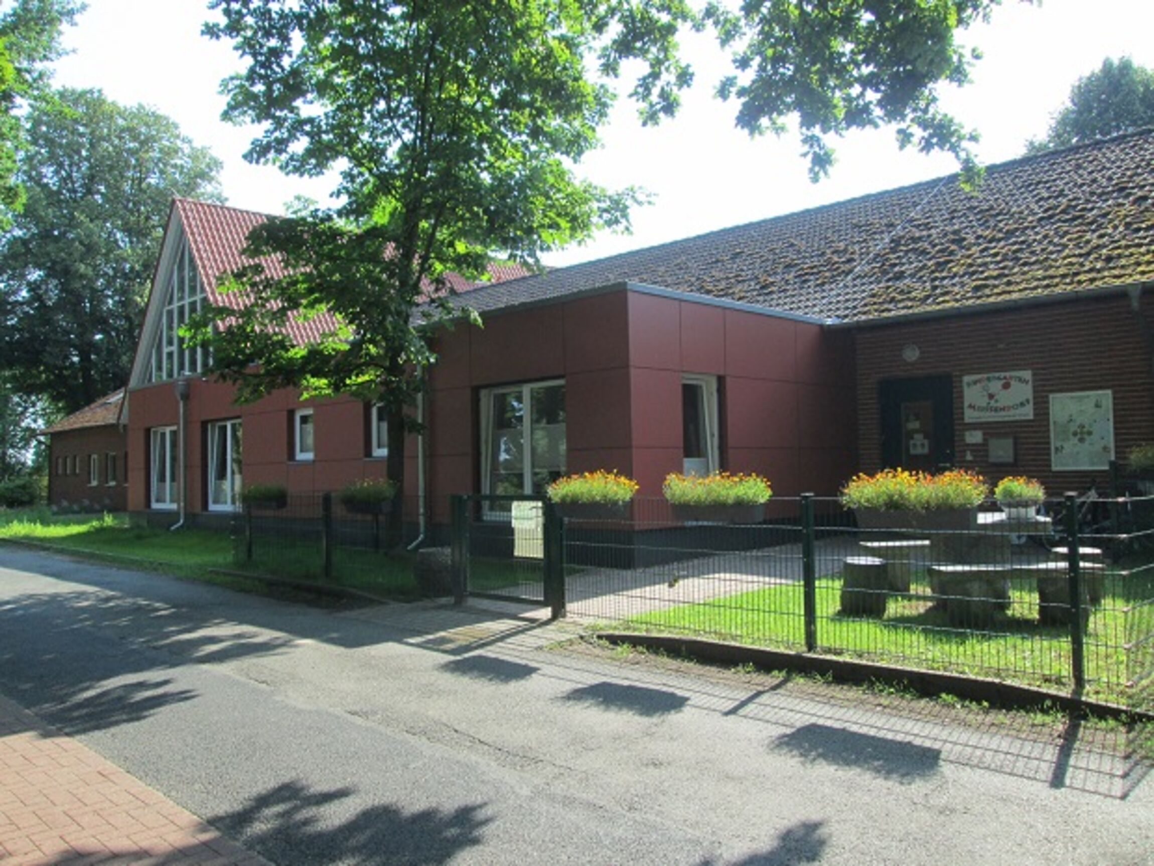 Eine Baumaßnahme, die jetzt noch beendet wurde, ist eine zusätzliche Eingangstür für den Krippenbereich, damit der bisherige Weg durch das Dorfgemeinschaftshaus entfallen kann. „Wir“ so Maja Rieck, „sind so glücklich über den Neubau, denn damit ein Team gut funktionieren kann, braucht es auch gute Arbeitsbedingungen. Das ist mit dem Neubau zu hundert Prozent gelungen.“ Unser Dank gilt der politischen Gemeinde Winsen und dem Träger der Kindertagesstätte für die verlässliche Umsetzung der Baumaßnahme.