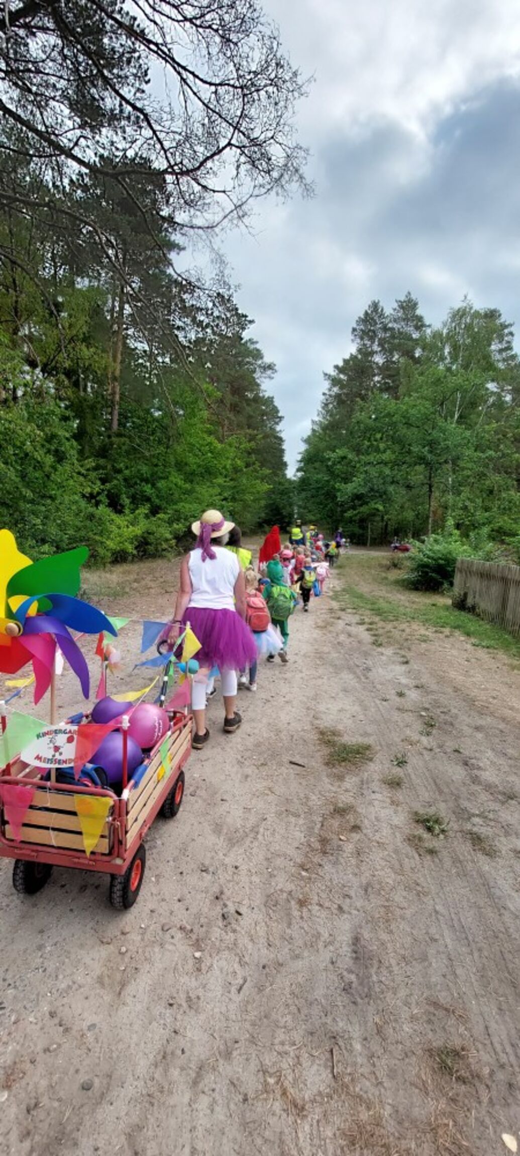 Verkleidet und mit bunt geschmückten Wagen, feierten die Kinder der evangelischen Kindertagesstätte Meißendorf am Montag, 29.08.22, die Heideblüte. Hierzu machten sich die Kinder der Fuchs-, Dachs- und Mäusegruppe gemeinsam, mit den pädagogischen Fachkräften auf den Weg zu einem Festumzug durchs Dorf. Begleitet von Musik und nach einem kurzen Halt auf dem Dorfplatz, wo unzählbare Eltern, sowie Anwohner den Umzug bewunderten und den Kindern freudig zuwinkten, setzte sich der Umzug fort. Ziel war die Meißendorfer Heidefläche. Dort angekommen, wurde erst einmal gemeinsam gepicknickt. Der „Heideblütensong“ der Kita, durfte selbstverständlich auch nicht fehlen. Nachdem gesungen und gepicknickt wurde, machten sich alle wieder auf den Weg zurück durchs Dorf, zur Kita. Auch hier standen vereinzelt Eltern und Anwohner an der Straße und bewunderten den Umzug. Überwältigt von der großen Anerkennung durch die Zuschauer des Umzugs und mit leuchtenden Augen bei Groß und Klein, ging der Heideblütenumzug 2022 zu Ende.